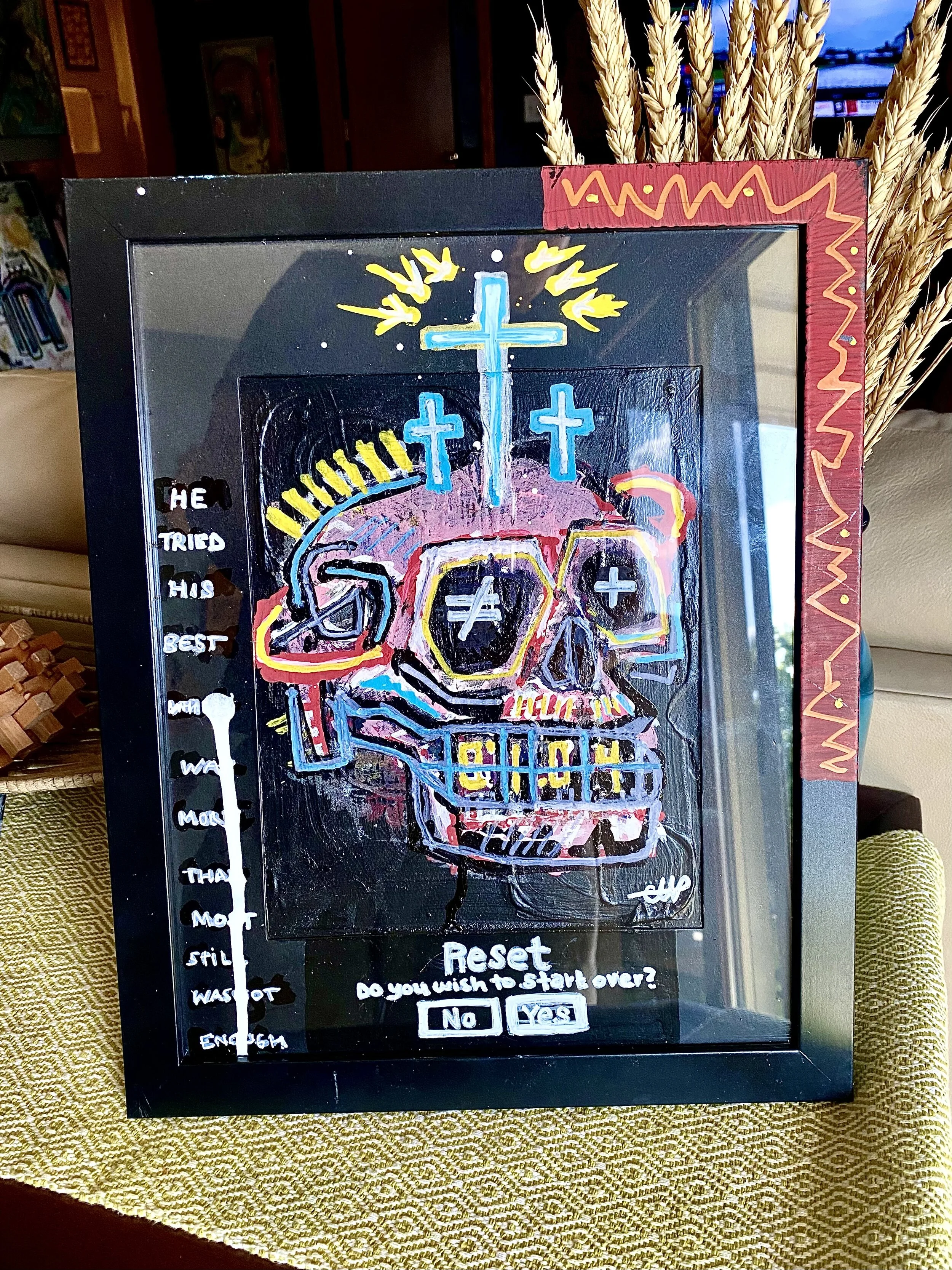 Shop › Death, be not proud (2021) Image 1 of 2 Image 2 of 2 Death, be not proud (2021) $210.00 16x12” frame with glassoil pastel amid acrylic paint. Add To Cart Added! 16x12” frame with glassoil pastel amid acrylic paint.